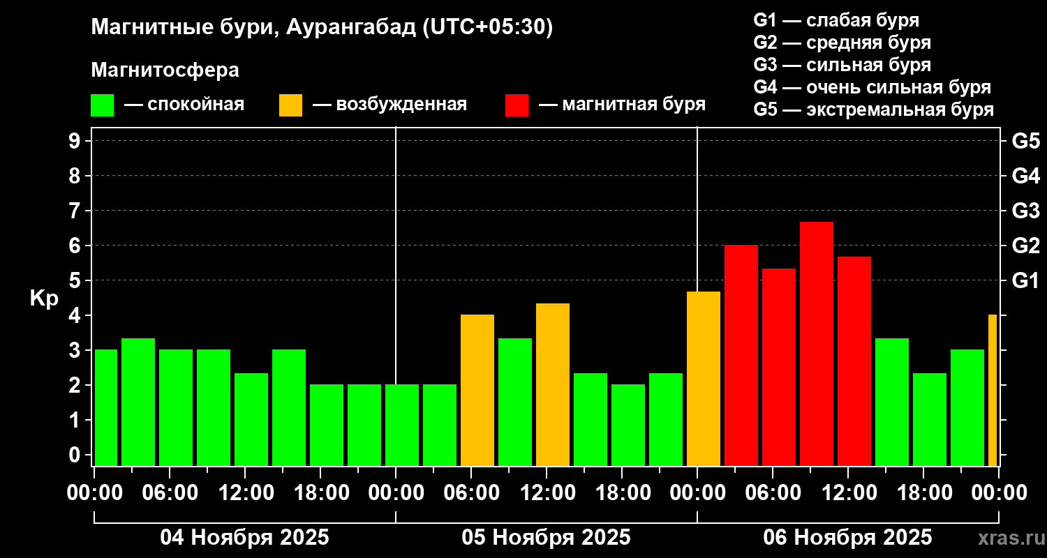 Магнитные бури в Аурангабаде — 6 ноября 2025 года