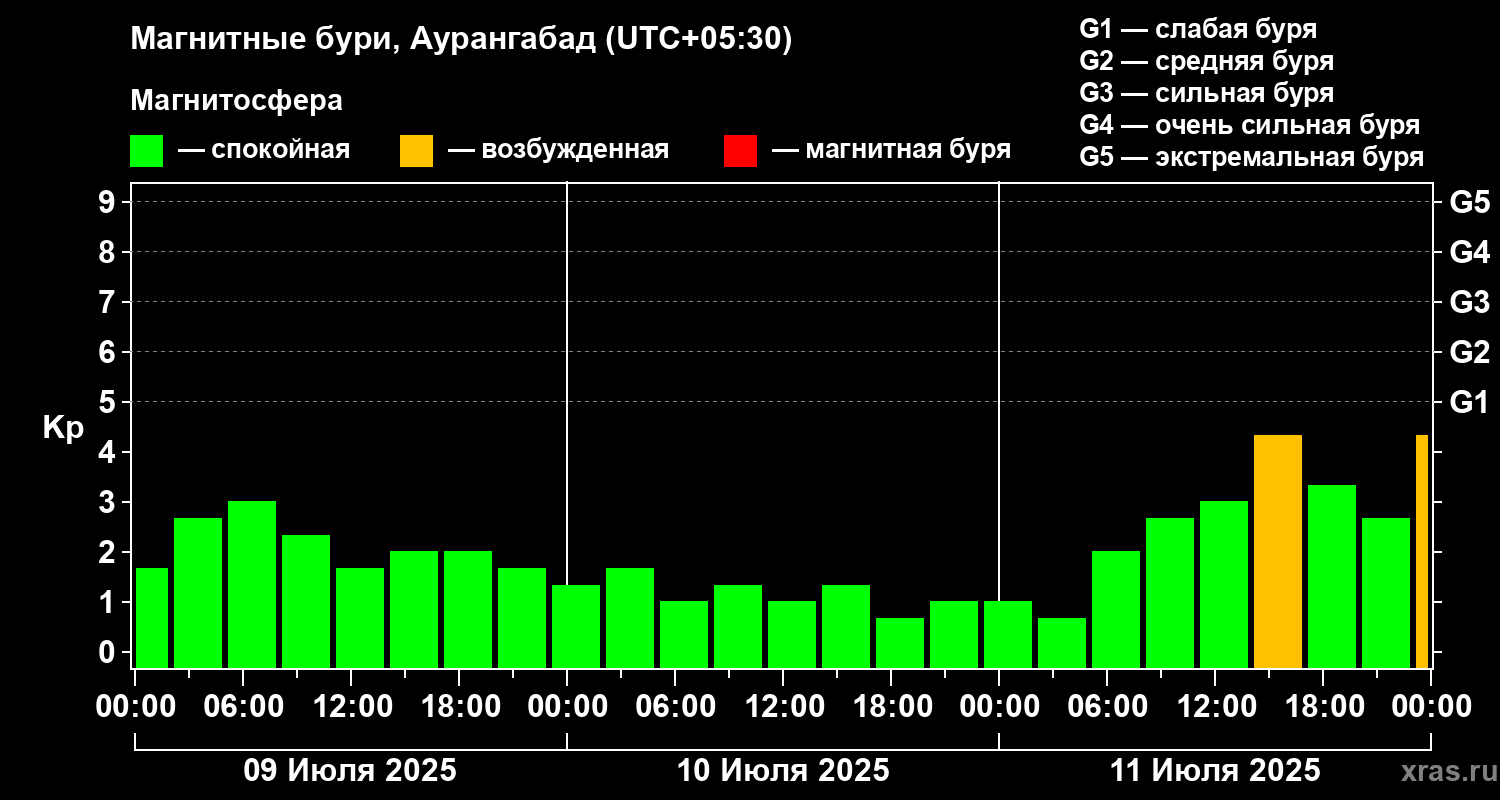 Магнитные бури в Аурангабаде — 11 июля 2025 года