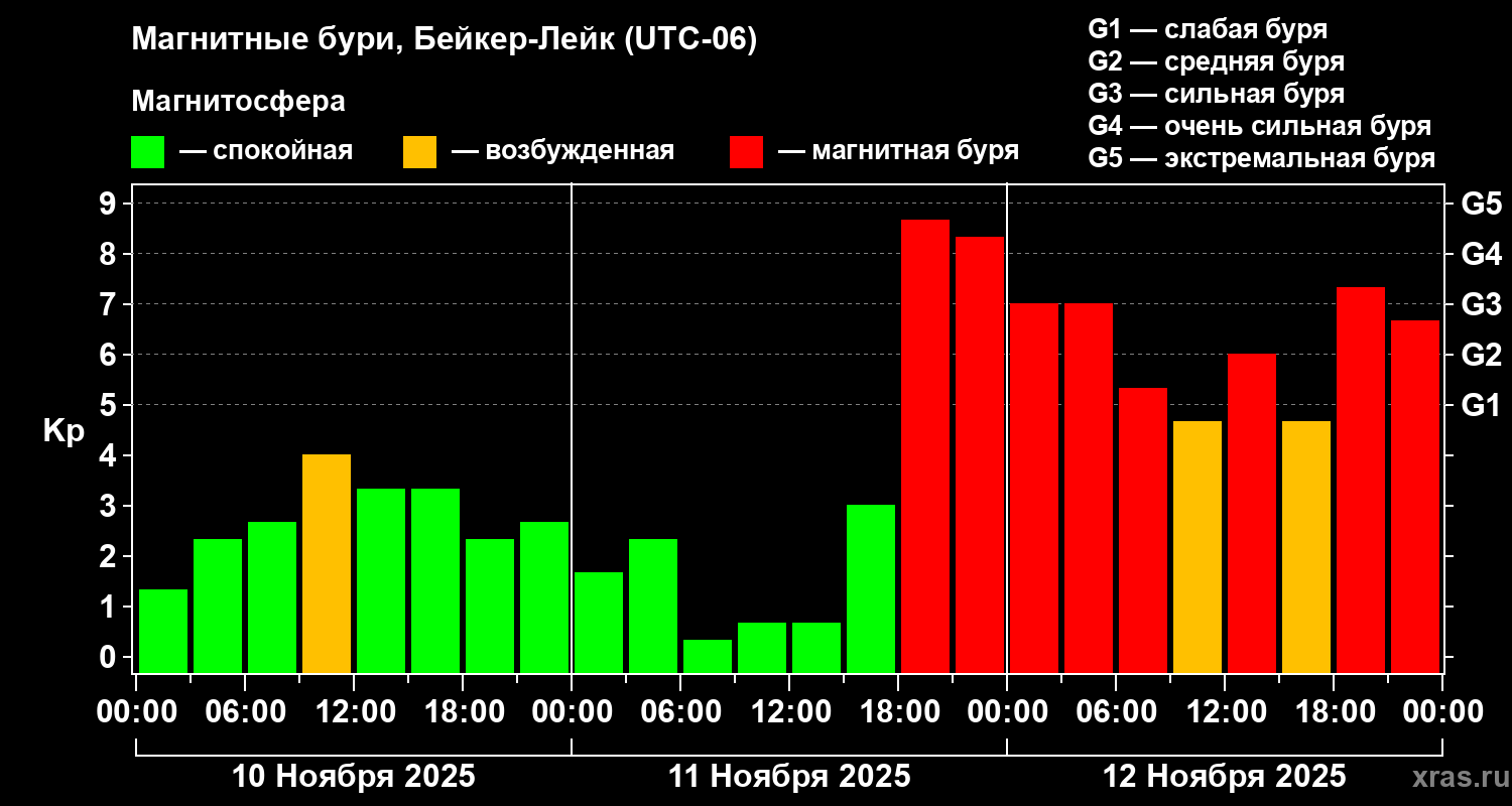 Магнитные бури в Бейкер-Лейке 12 ноября 2025 года