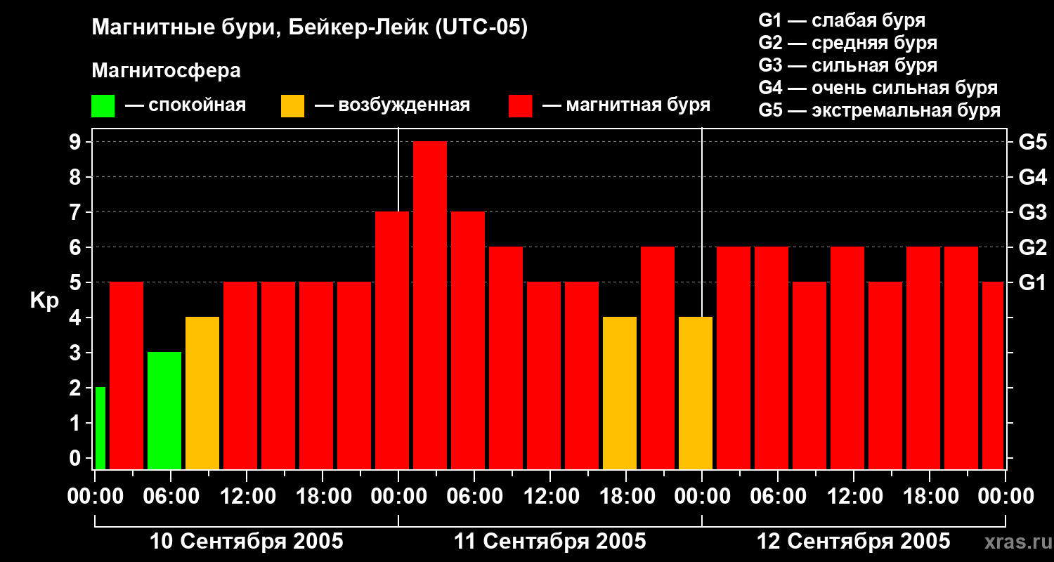Магнитные бури в Бейкер-Лейке 12 сентября 2005 года