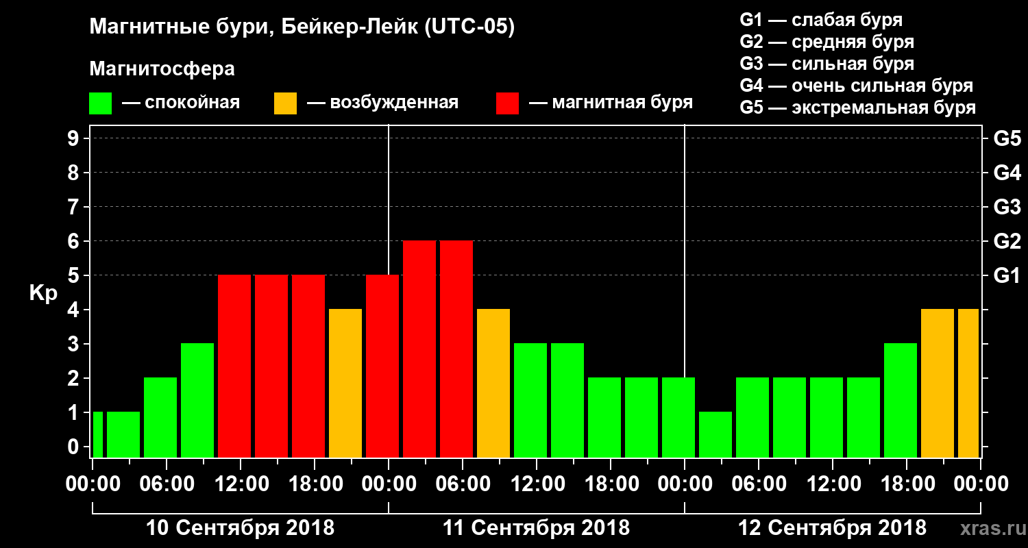Магнитные бури в Бейкер-Лейке 12 сентября 2018 года