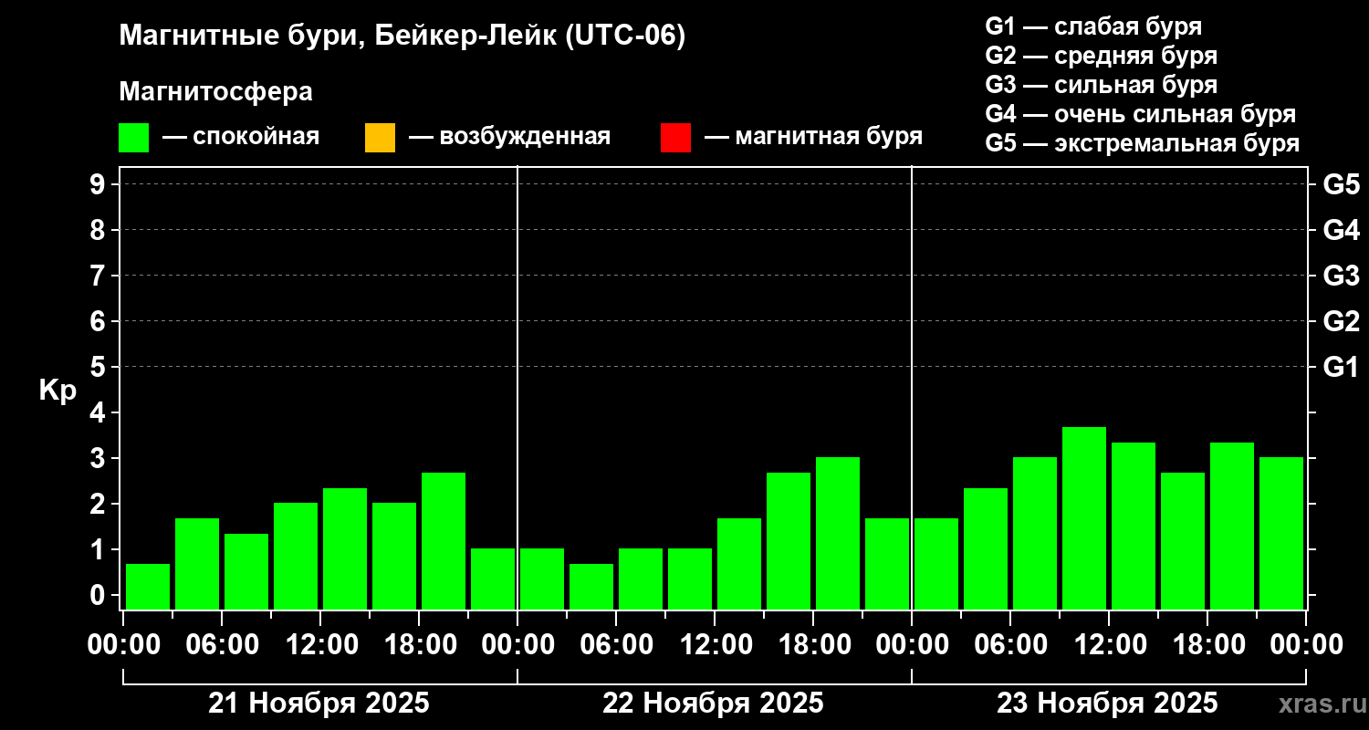 Магнитные бури в Бейкер-Лейке 23 ноября 2025 года
