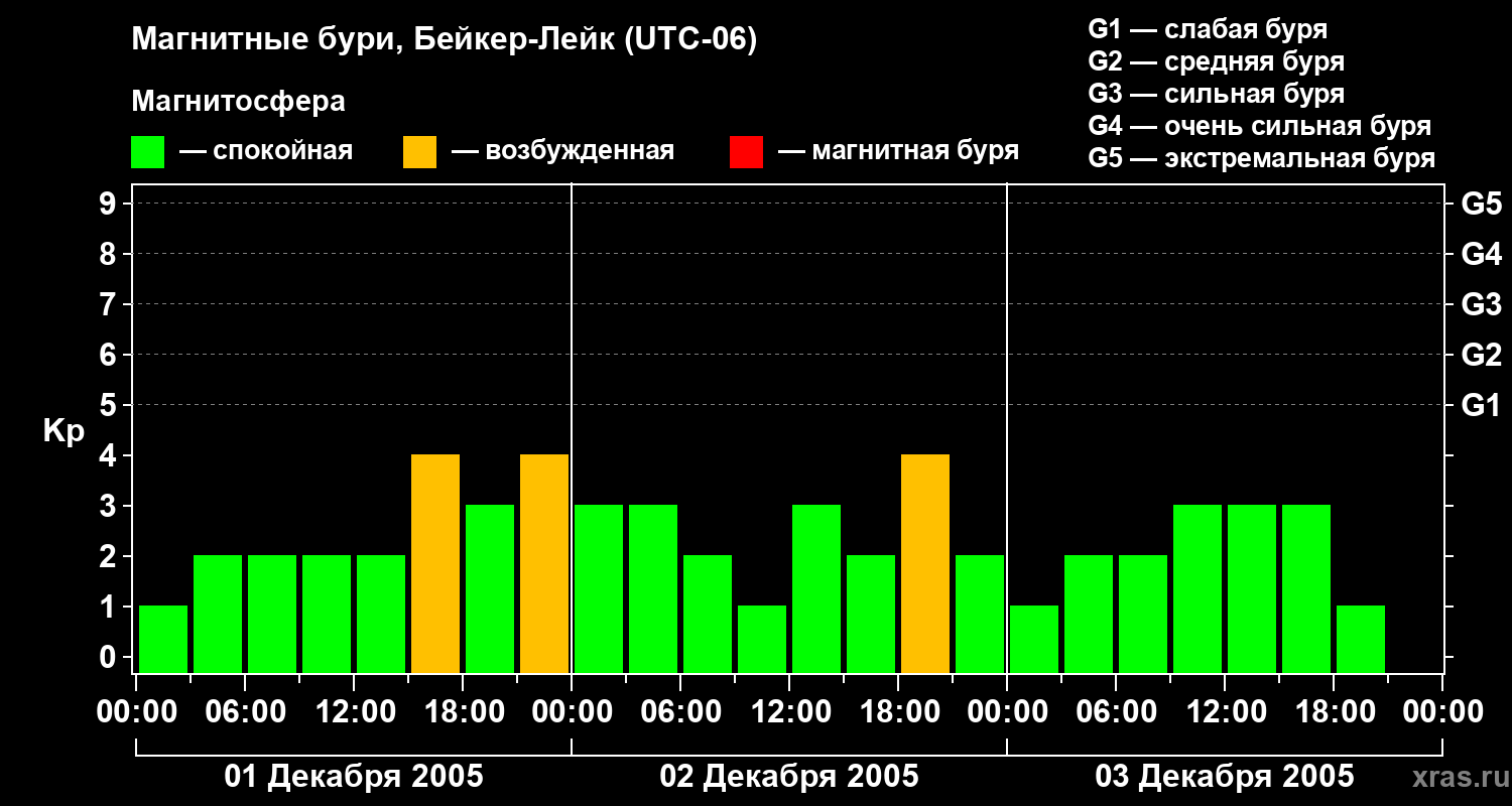 Магнитные бури в Бейкер-Лейке 3 декабря 2005 года