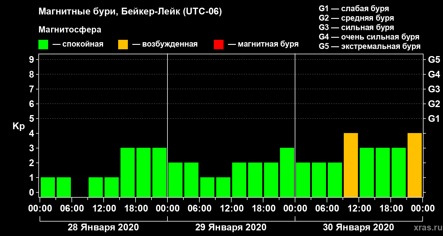 Магнитные бури в Бейкер-Лейке 30 января 2020 года