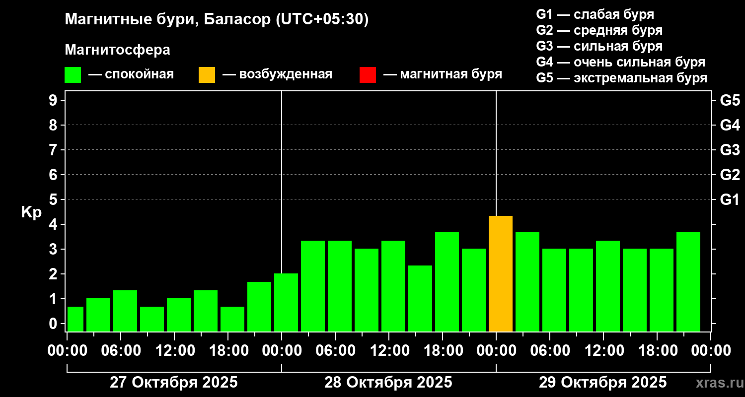 Магнитные бури в Баласоре — 29 октября 2025 года