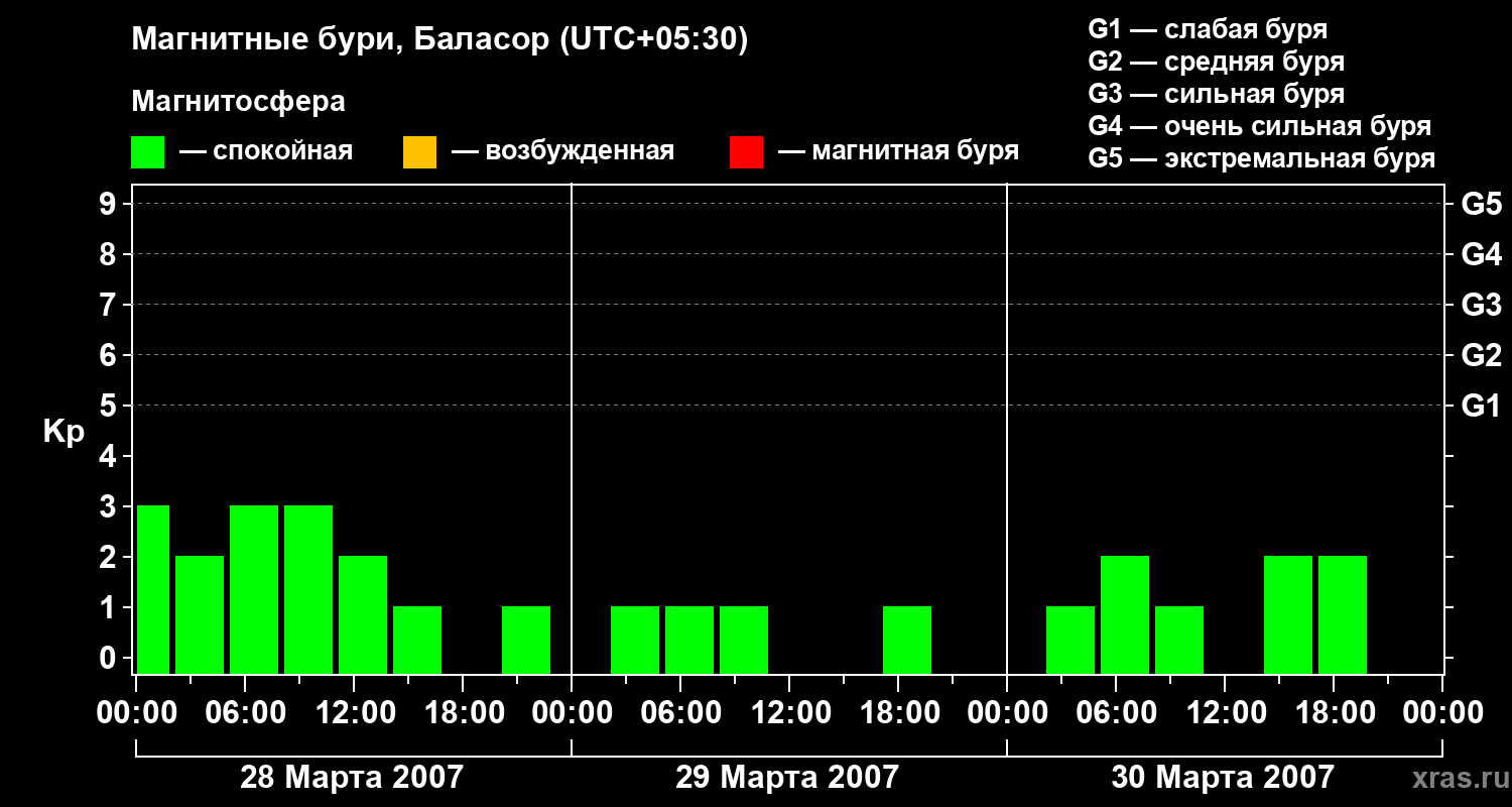 Магнитные бури в Баласоре — 30 марта 2007 года