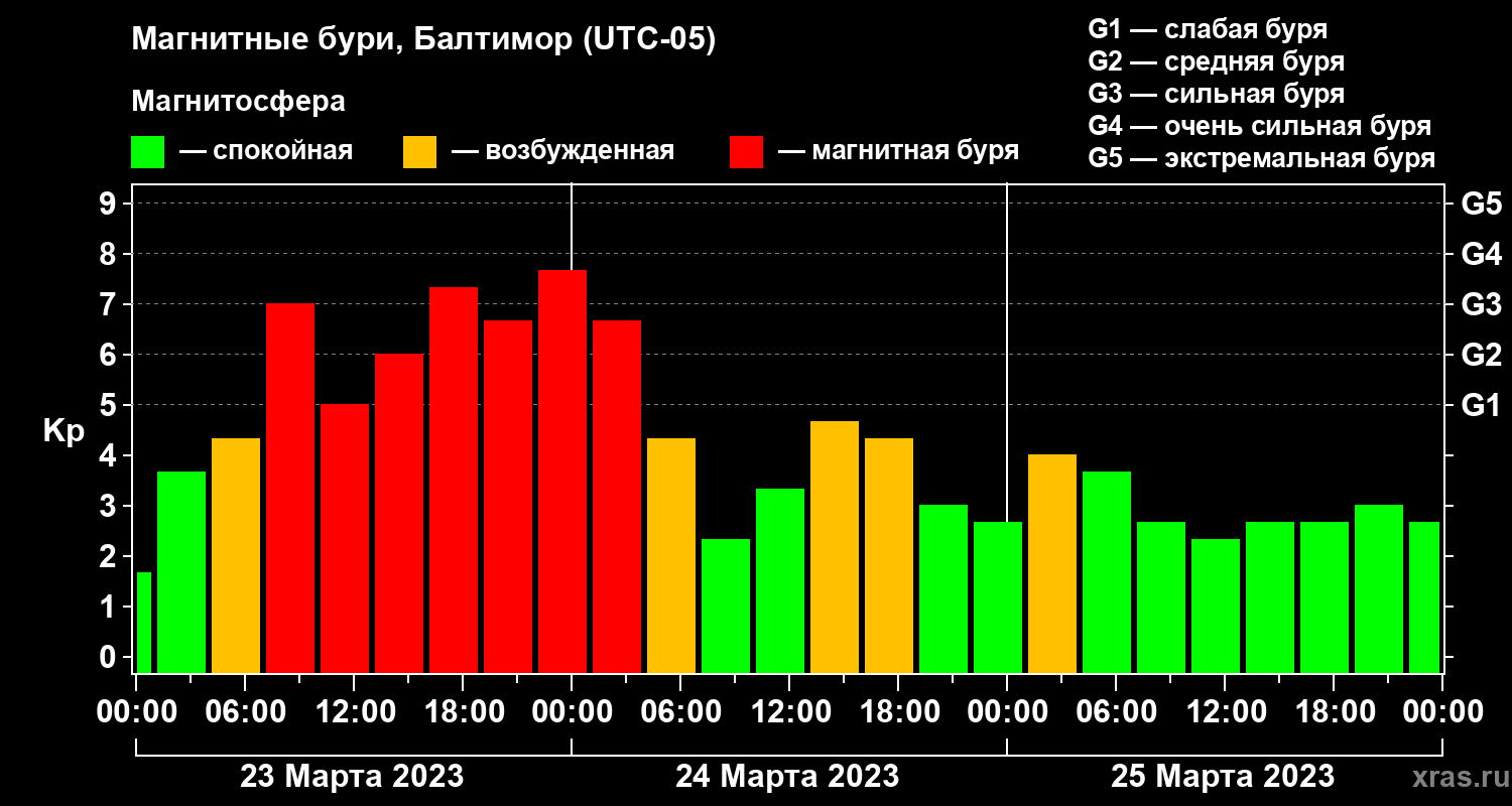 Магнитные бури в Балтиморе 25 марта 2023 года