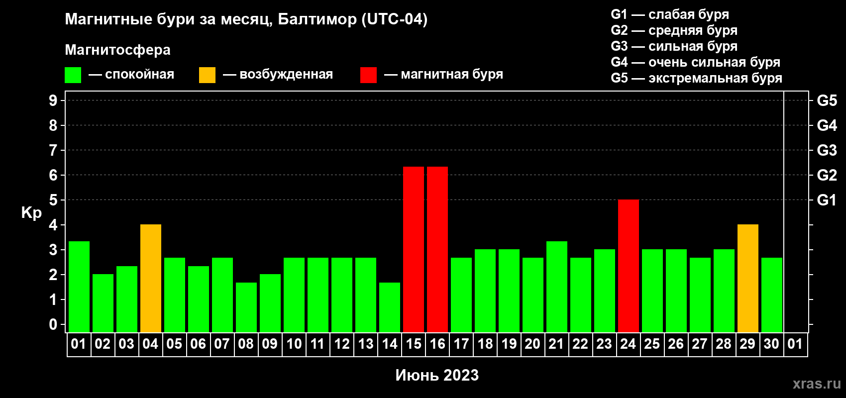 Магнитные бури в Балтиморе — 30 июня 2023 года