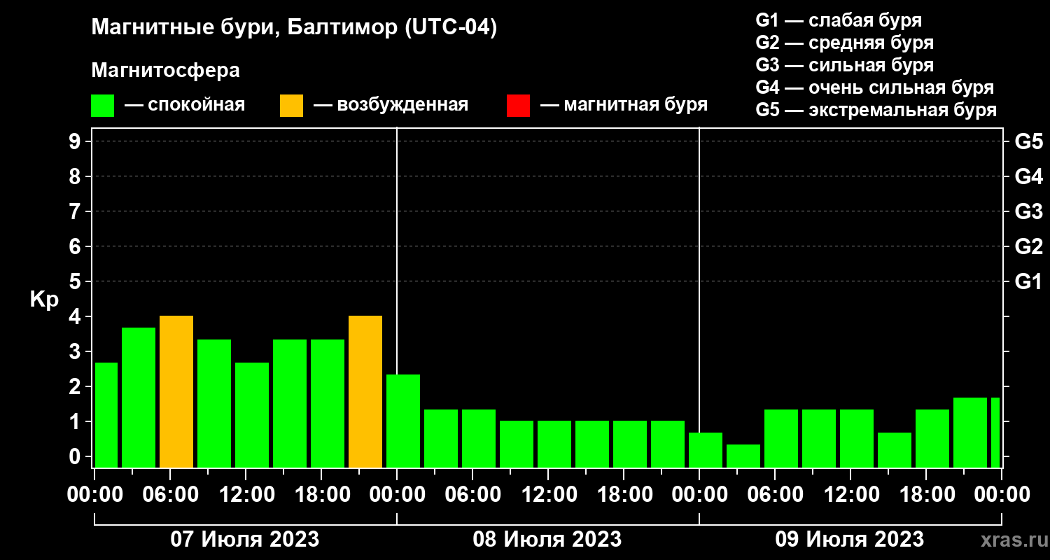 Магнитные бури в Балтиморе — 9 июля 2023 года