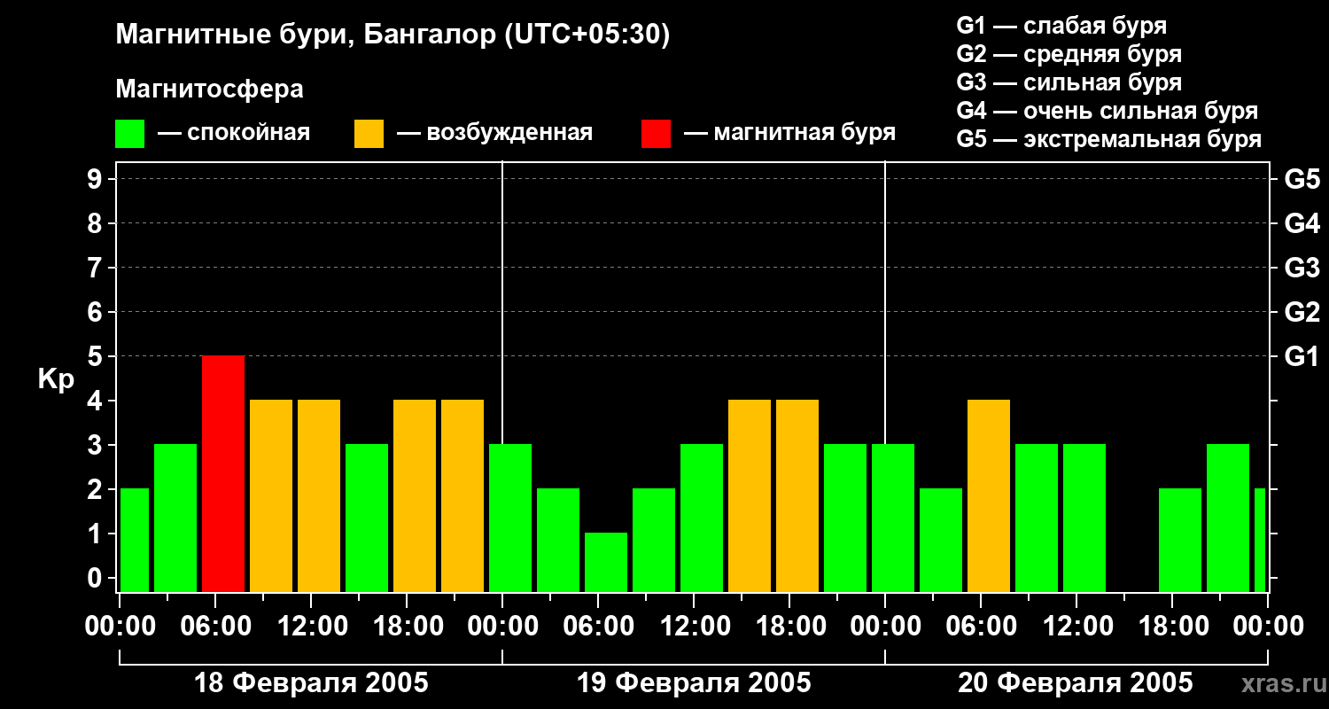 Магнитные бури в Бангалоре — 20 февраля 2005 года