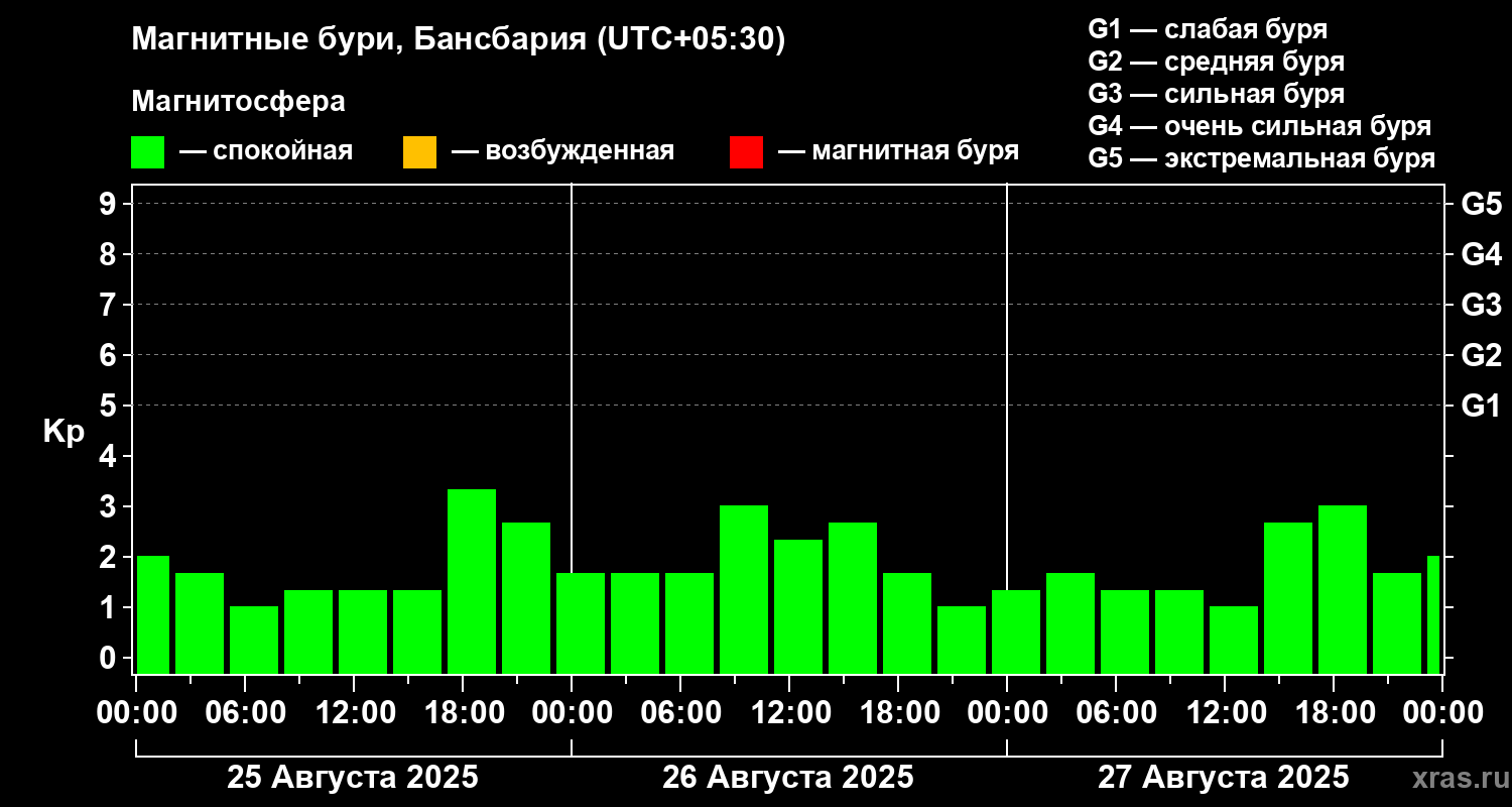 Магнитные бури в Бансбарии — 27 августа 2025 года