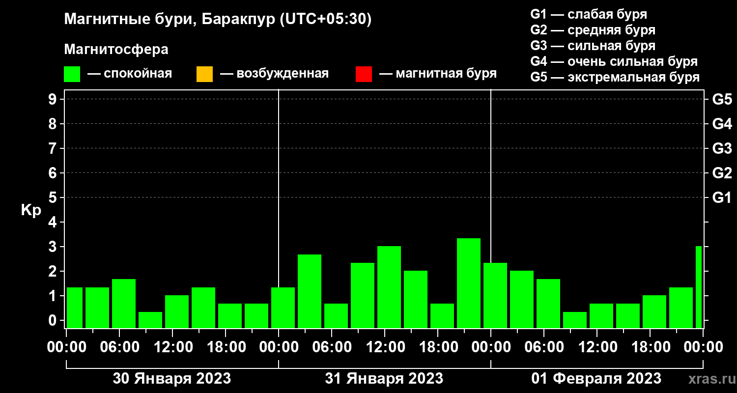 Магнитные бури в Баракпуре 1 февраля 2023 года