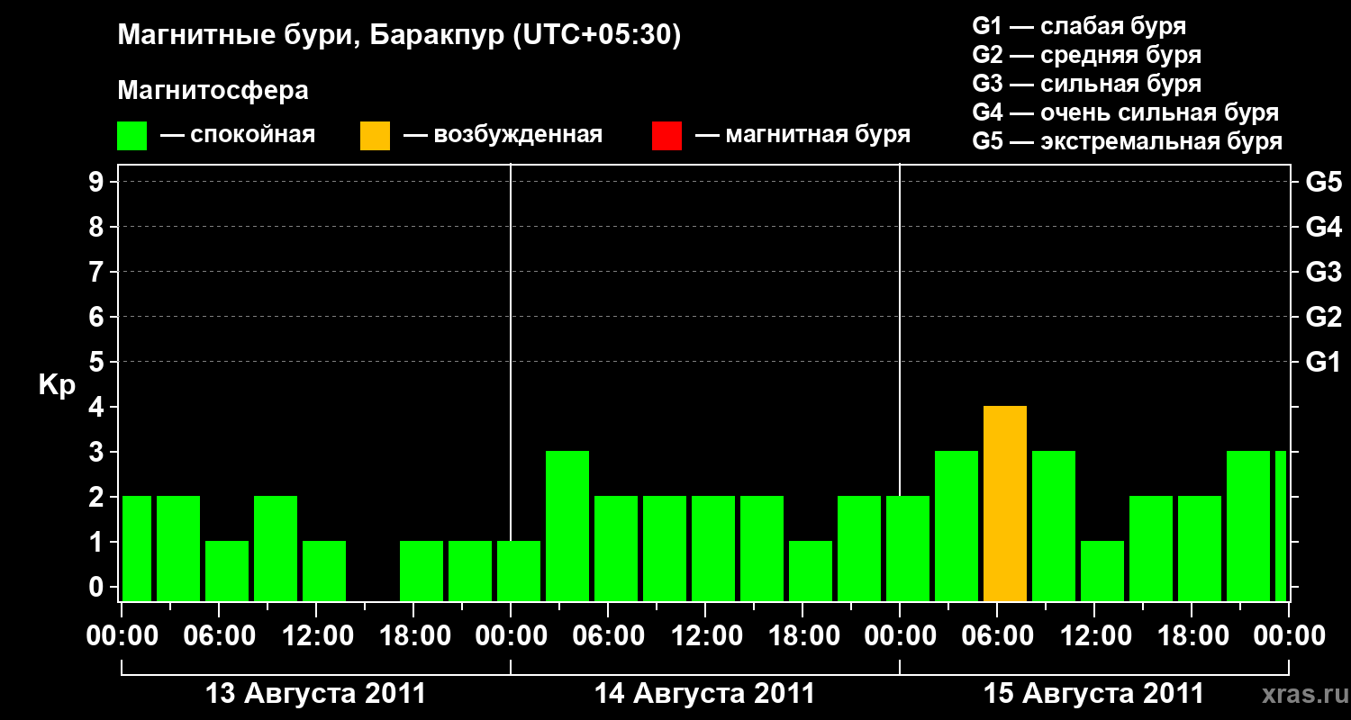 Магнитные бури в Баракпуре — 15 августа 2011 года
