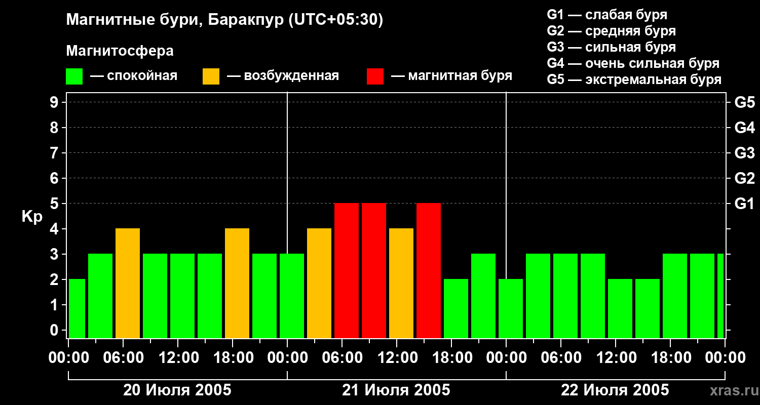 Магнитные бури в Баракпуре 22 июля 2005 года