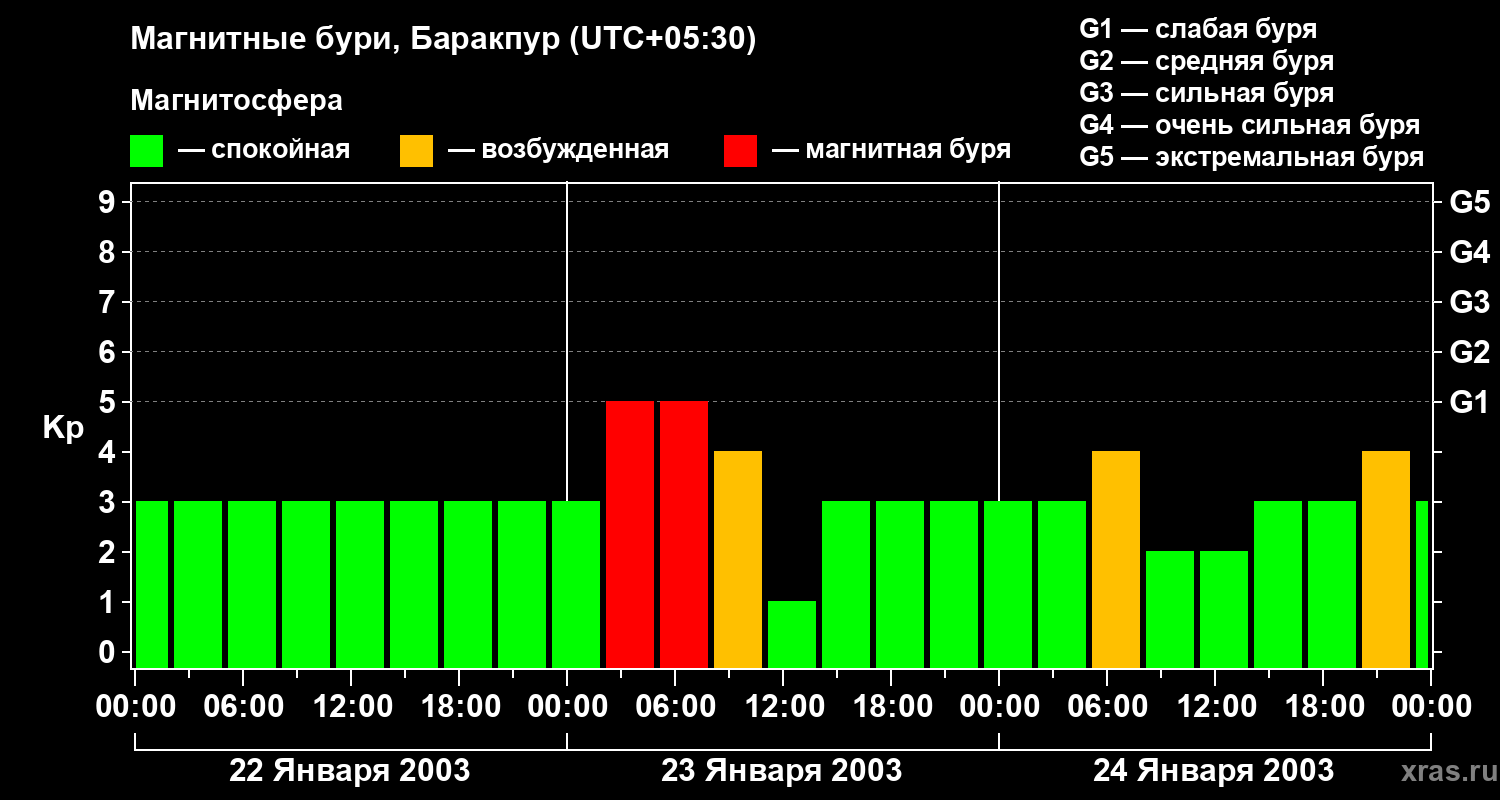 Магнитные бури в Баракпуре — 24 января 2003 года