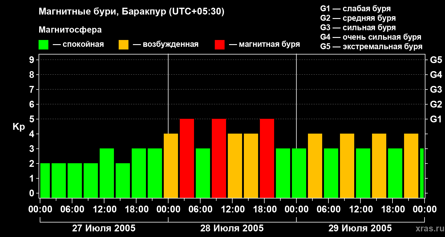 Магнитные бури в Баракпуре — 29 июля 2005 года