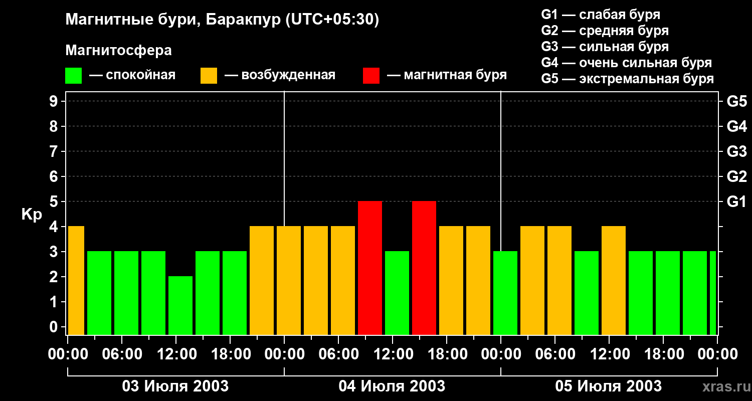 Магнитные бури в Баракпуре — 5 июля 2003 года