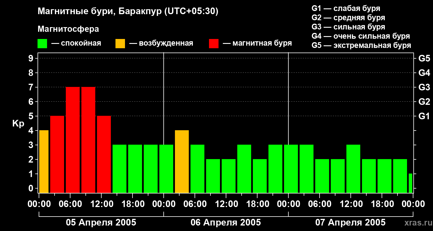 Магнитные бури в Баракпуре — 7 апреля 2005 года