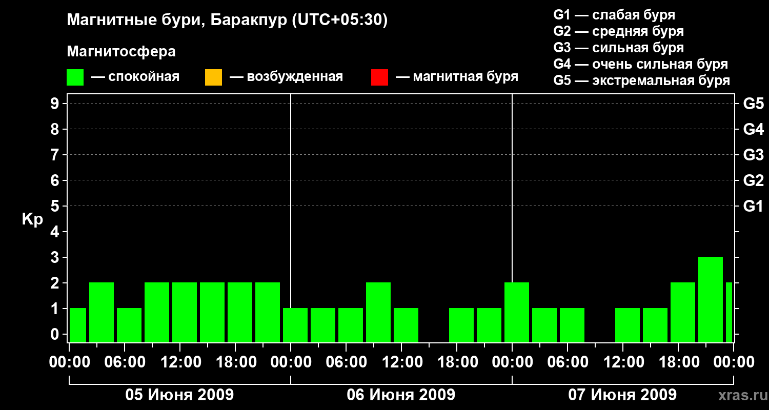 Магнитные бури в Баракпуре 7 июня 2009 года