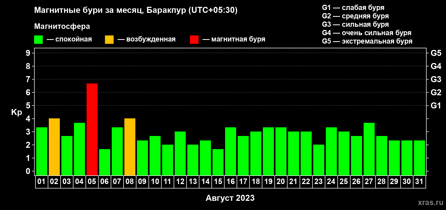 Список магнитных бурь в августе 2023 года