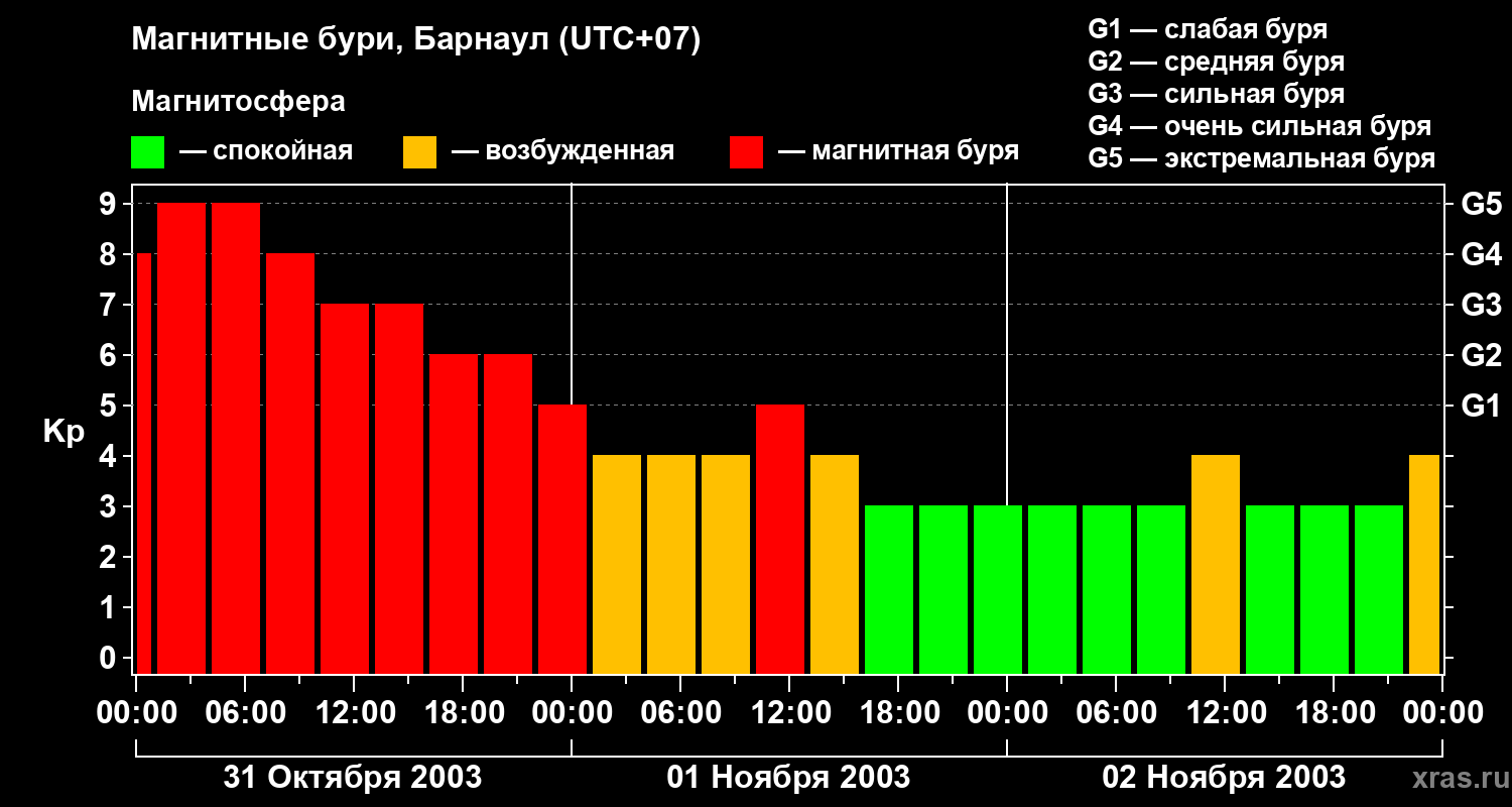 Магнитные бури в Барнауле — 2 ноября 2003 года