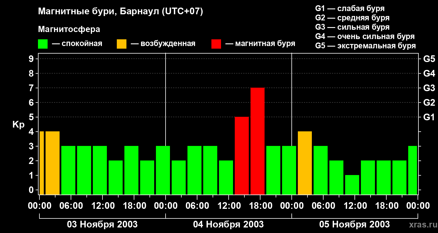 Магнитные бури в Барнауле — 5 ноября 2003 года