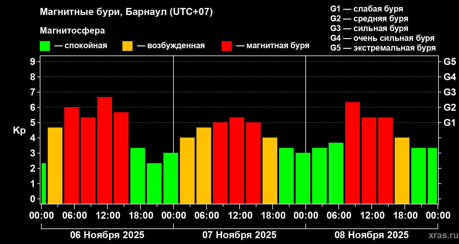 Магнитные бури в Барнауле — 8 ноября 2025 года