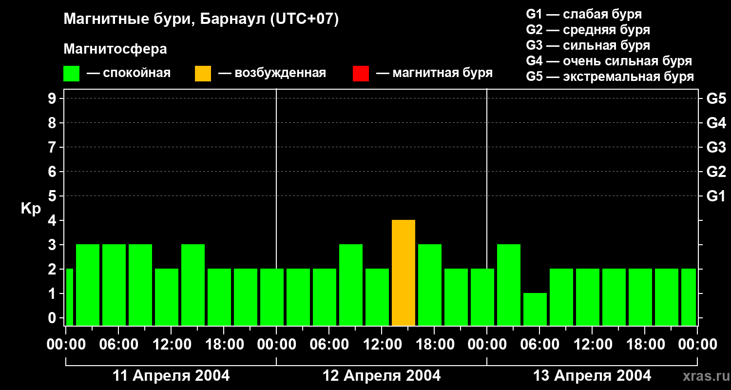 Магнитные бури в Барнауле — 13 апреля 2004 года