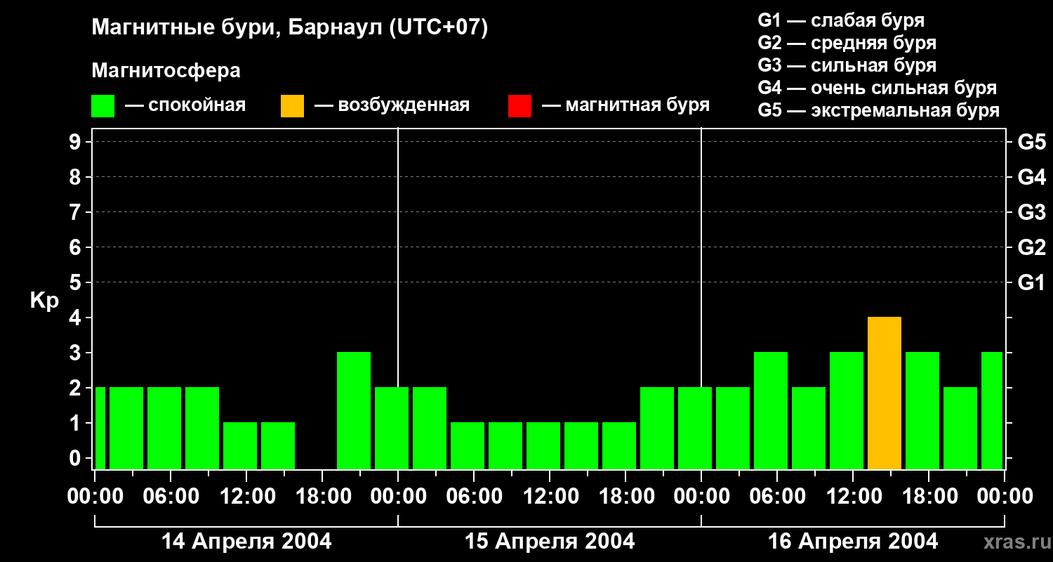 Магнитные бури в Барнауле — 16 апреля 2004 года