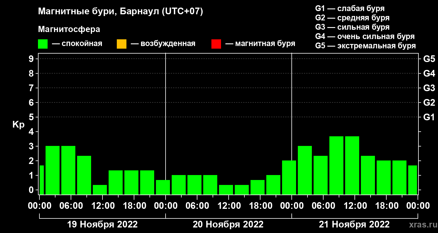 Магнитные бури в Барнауле — 21 ноября 2022 года