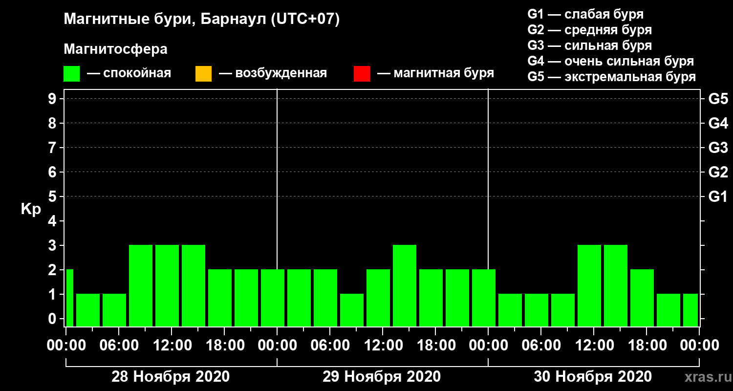 Магнитные бури в Барнауле — 30 ноября 2020 года