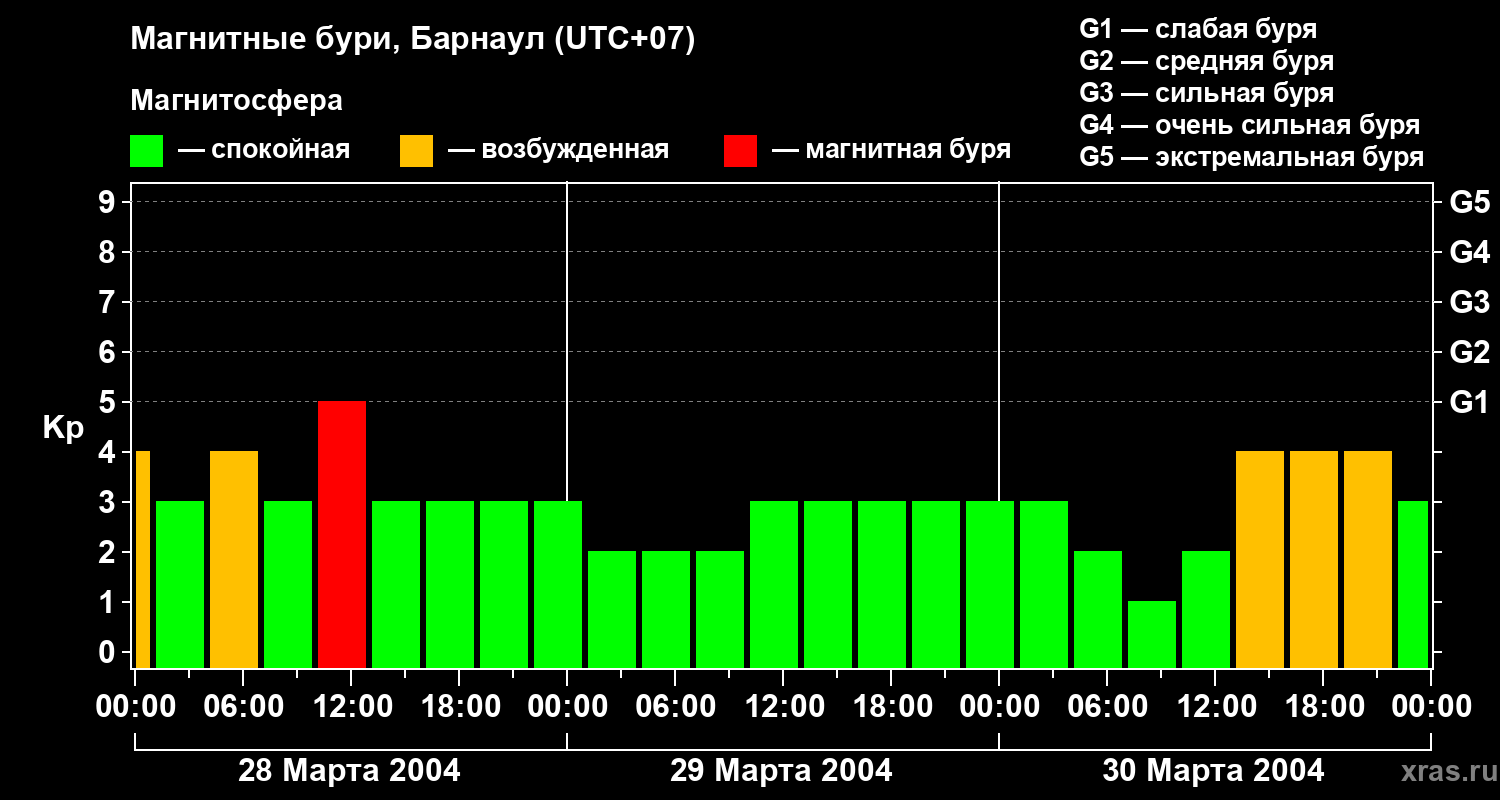 Магнитные бури в Барнауле — 30 марта 2004 года