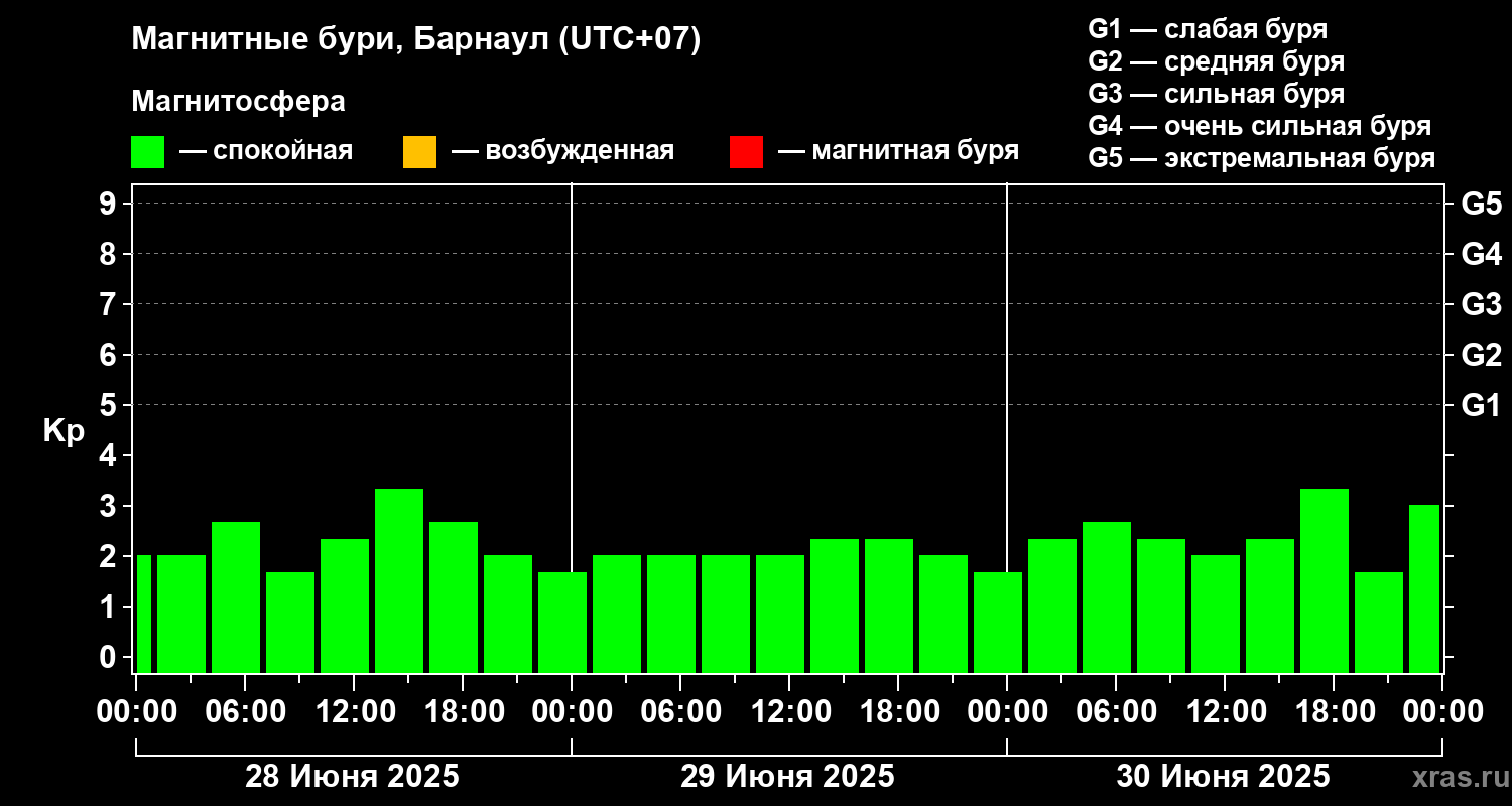 Магнитные бури в Барнауле — 30 июня 2025 года