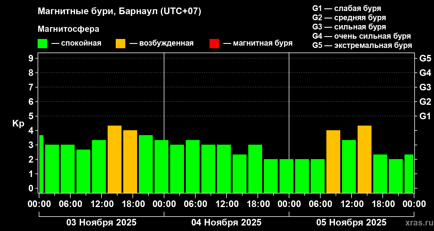 Магнитные бури в Барнауле 5 ноября 2025 года