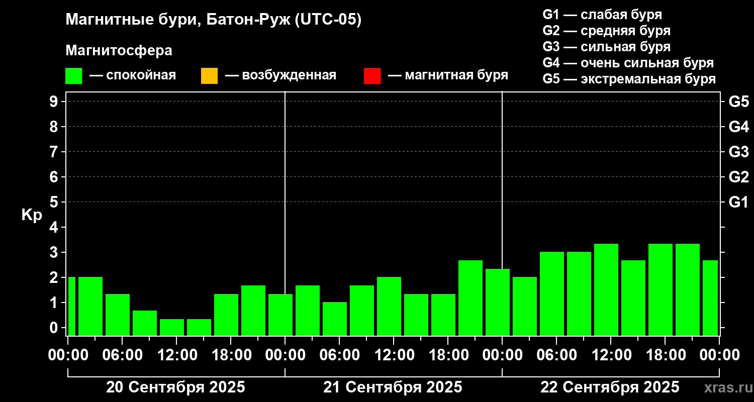 Магнитные бури в Батон-Руже — 22 сентября 2025 года