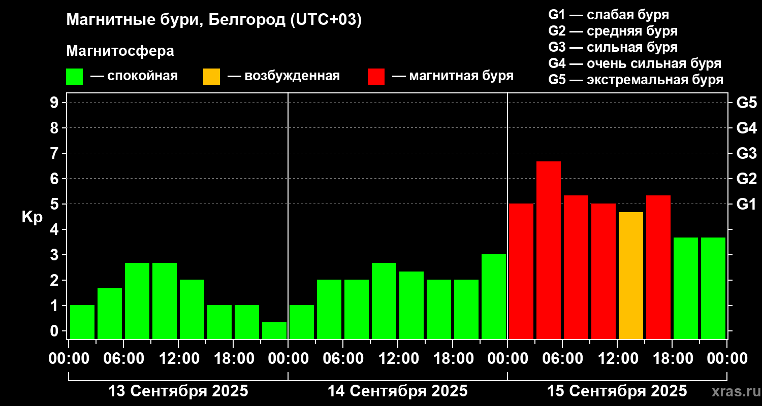 Магнитные бури в Белгороде 15 сентября 2025 года
