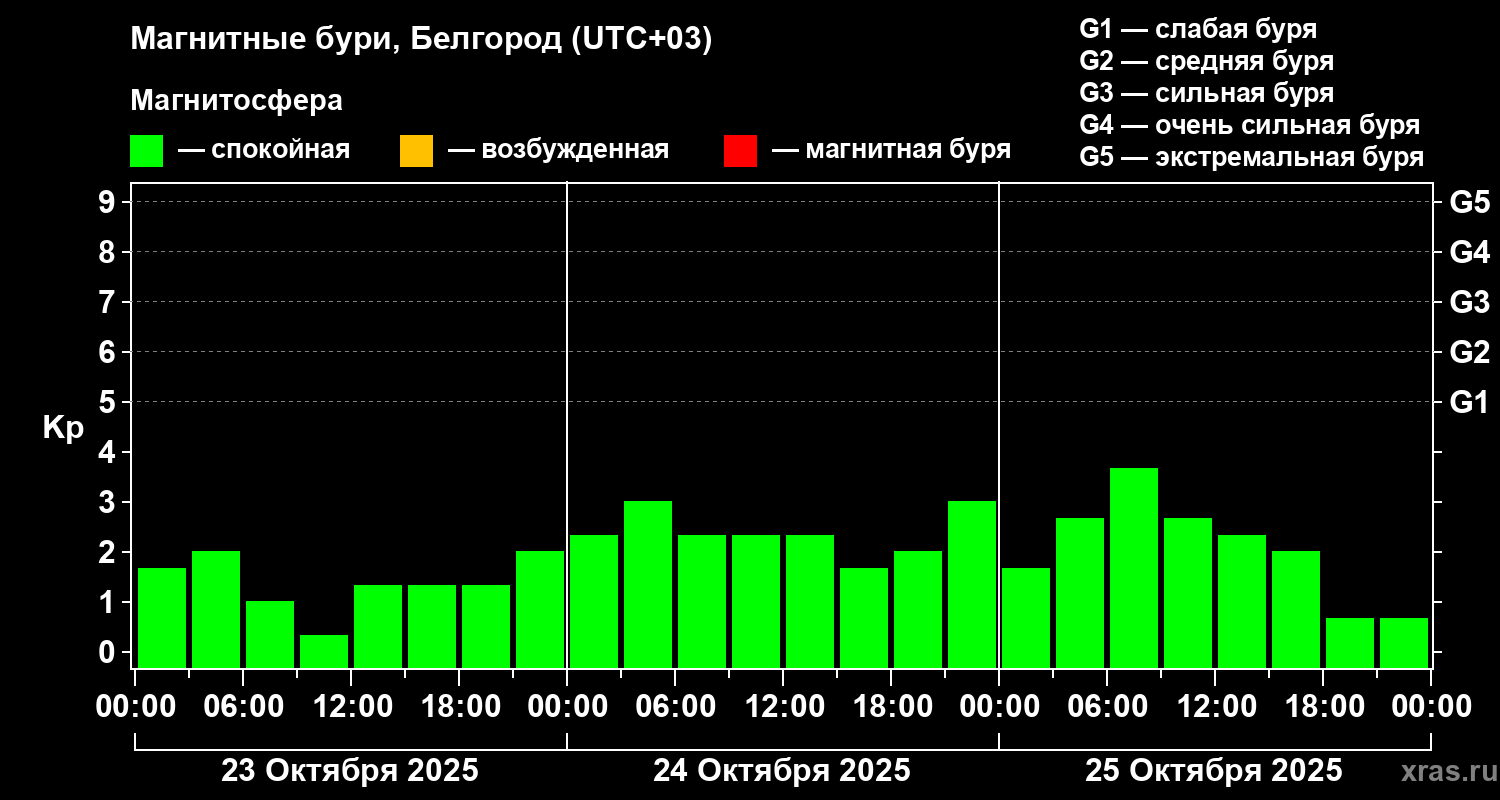 Магнитные бури в Белгороде — 25 октября 2025 года