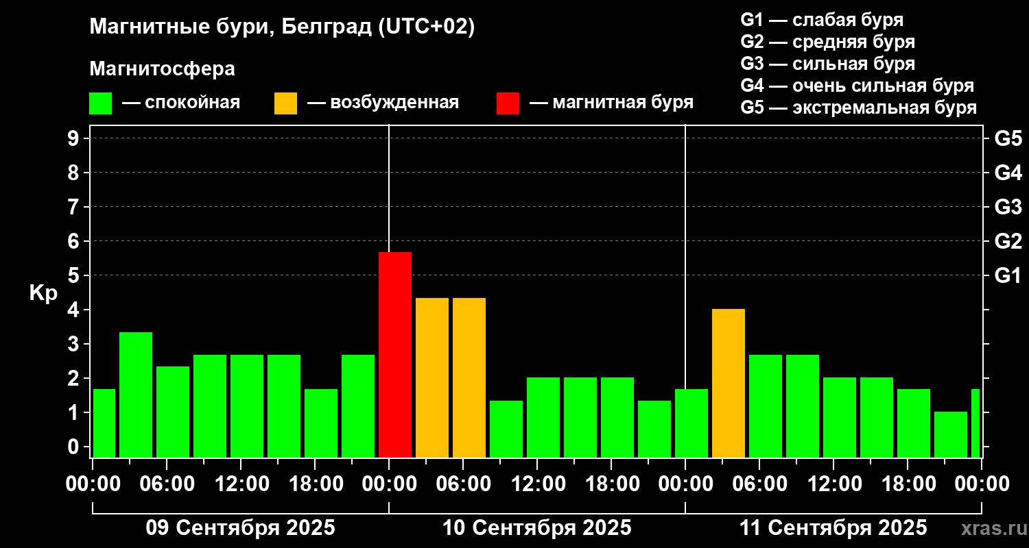 Магнитные бури в Белграде — 11 сентября 2025 года
