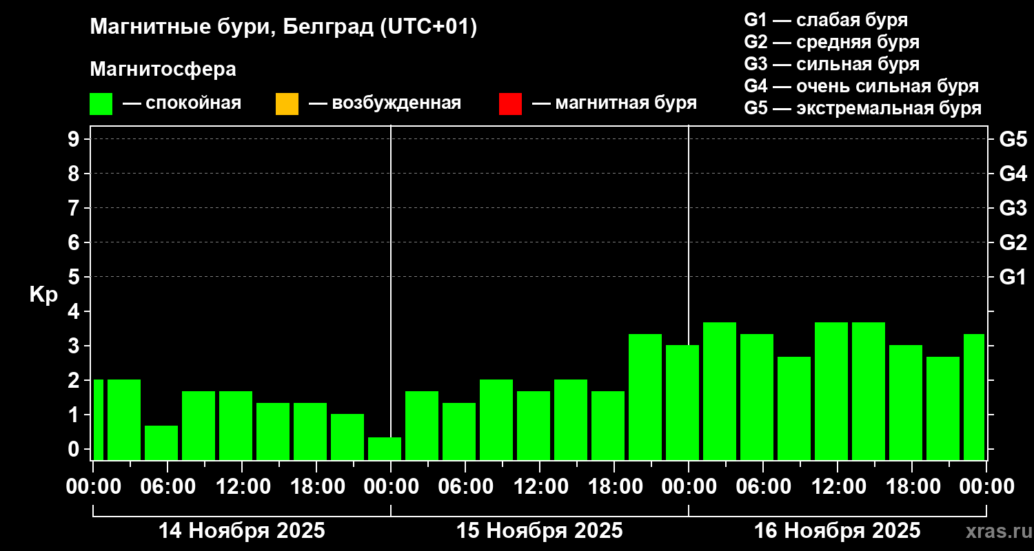 Магнитные бури в Белграде — 16 ноября 2025 года