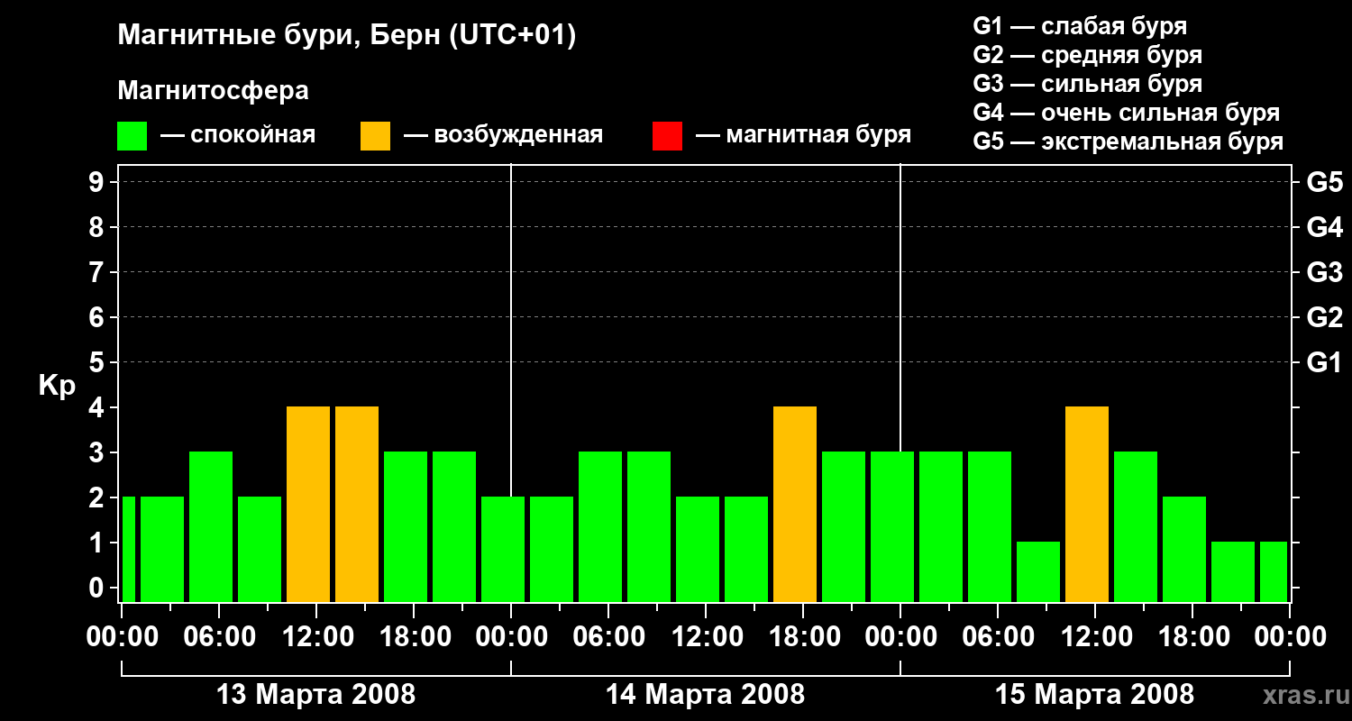Магнитные бури в Берне — 15 марта 2008 года