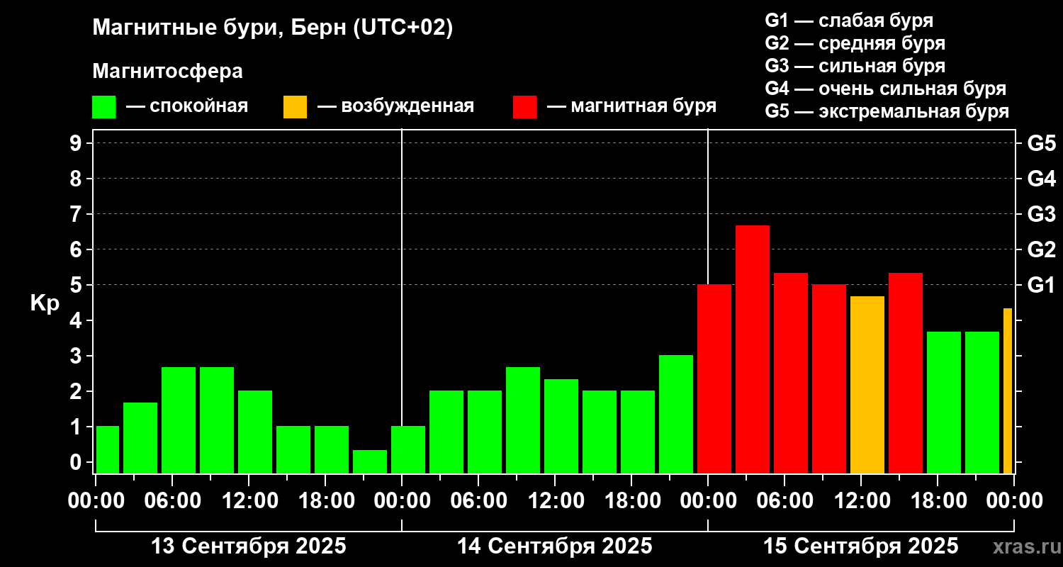 Магнитные бури в Берне 15 сентября 2025 года