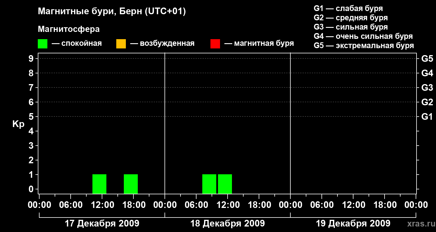 Изменения геомагнитного индекса Kp с 17 по 19 декабря 2009 года для средних широт