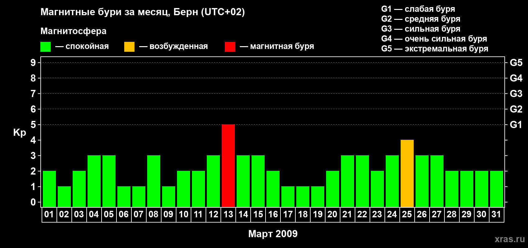 Магнитные бури в Берне в марте 2009 года