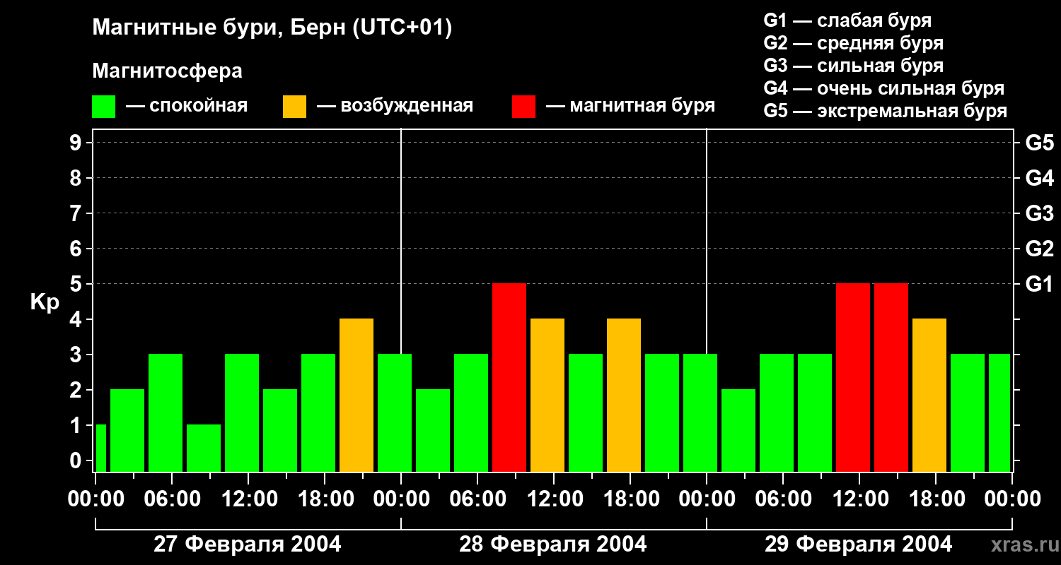Магнитные бури в Берне — 29 февраля 2004 года
