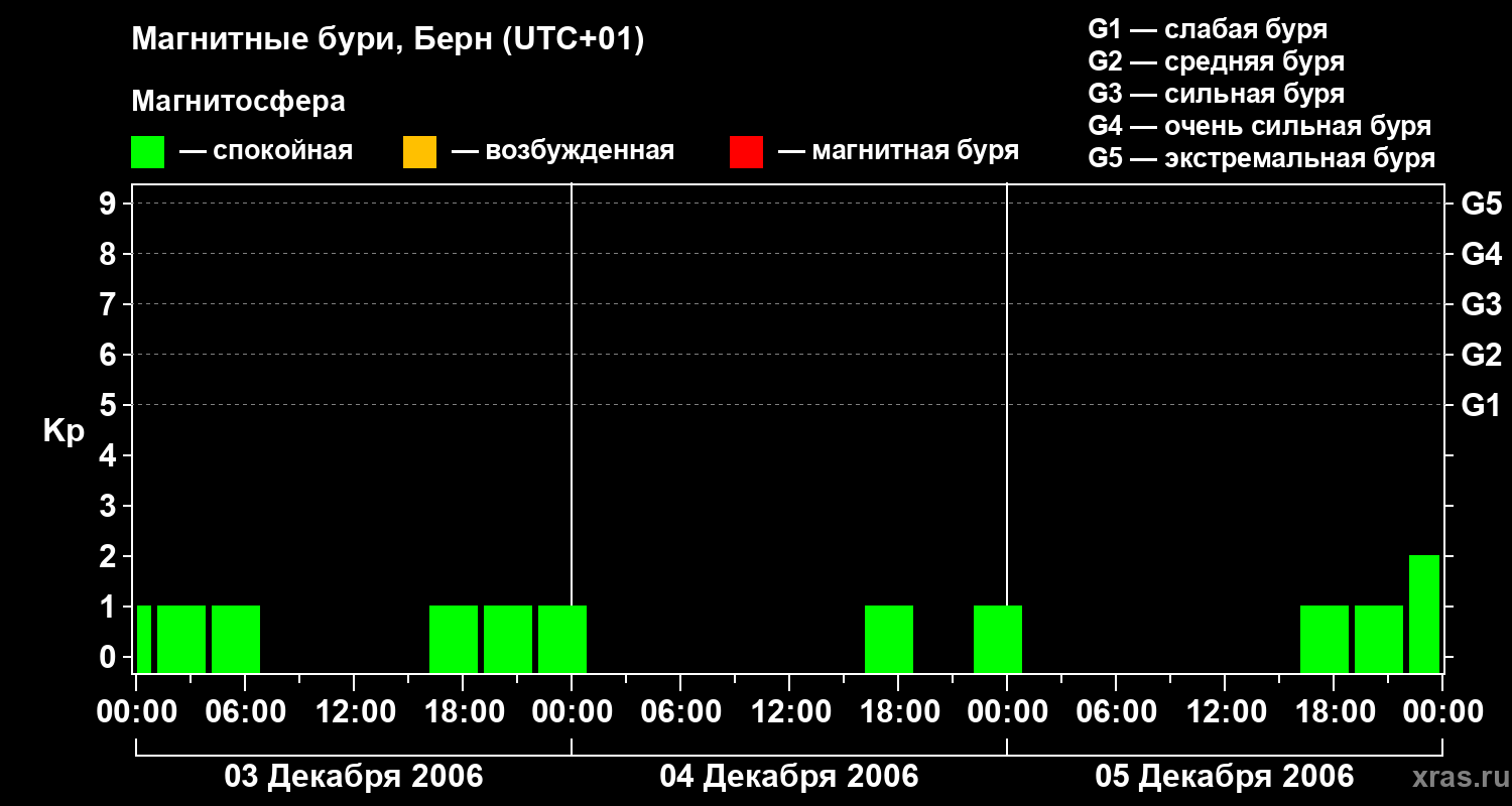 Изменения геомагнитного индекса Kp с 3 по 5 декабря 2006 года для средних широт