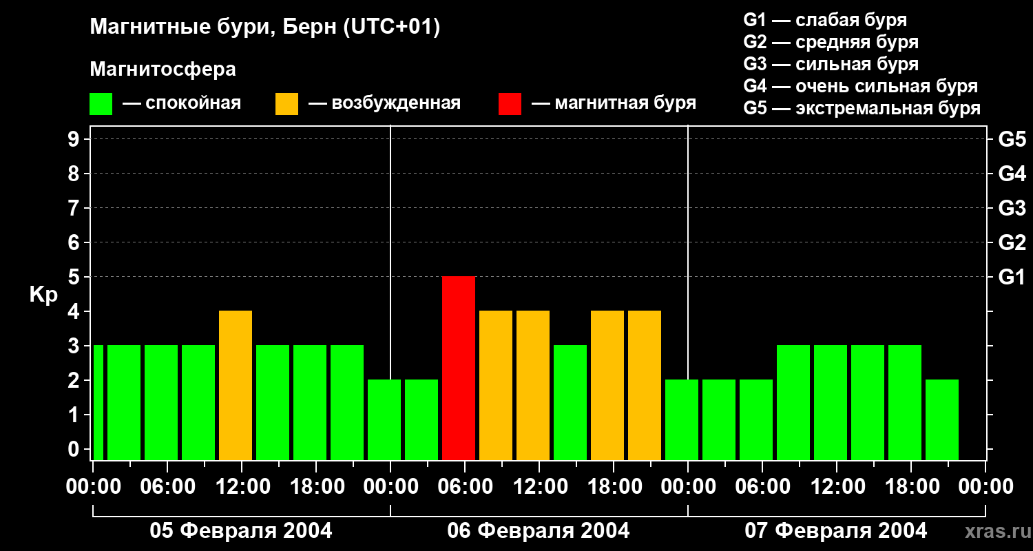 Магнитные бури в Берне — 7 февраля 2004 года