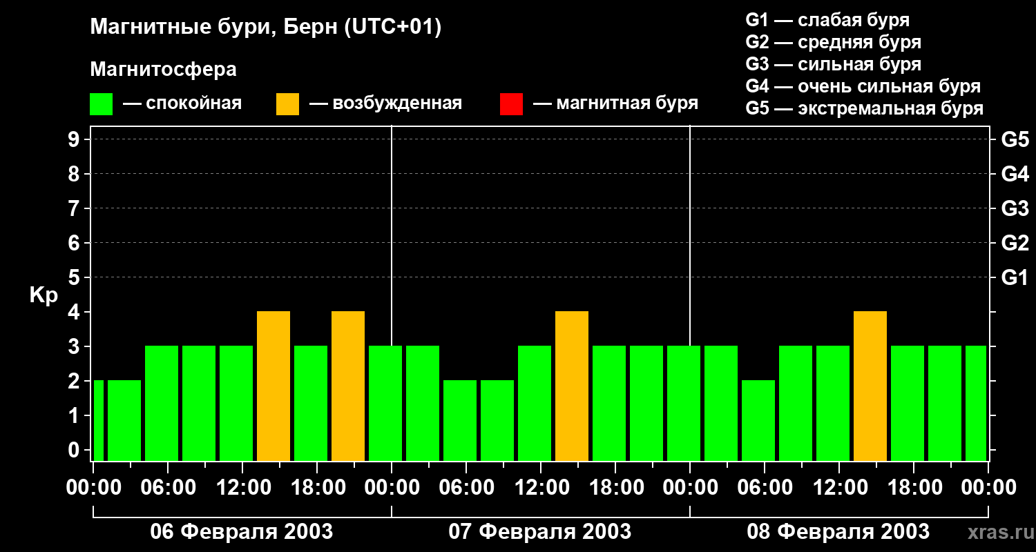 Магнитные бури в Берне в феврале 2003 года