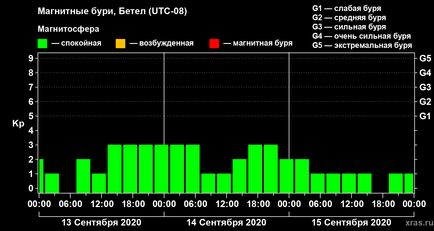 Магнитные бури в Бетеле 15 сентября 2020 года
