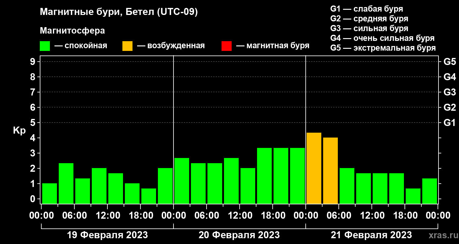 Магнитные бури в Бетеле 21 февраля 2023 года