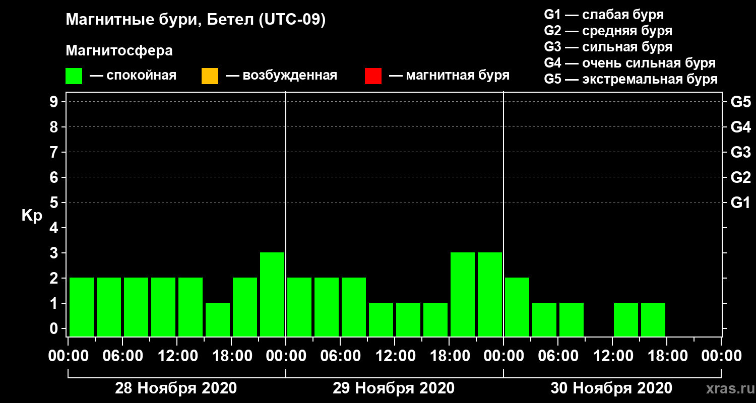 Магнитные бури в Бетеле 30 ноября 2020 года
